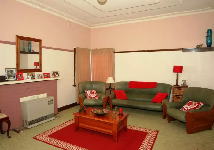 The kitchen, although due for a makeover has good cupboard space, is naturally bright and has gas cooking. Three bedrooms, two doubles and a single, internal and external toilets, secure yard, garden shed and a double carport.