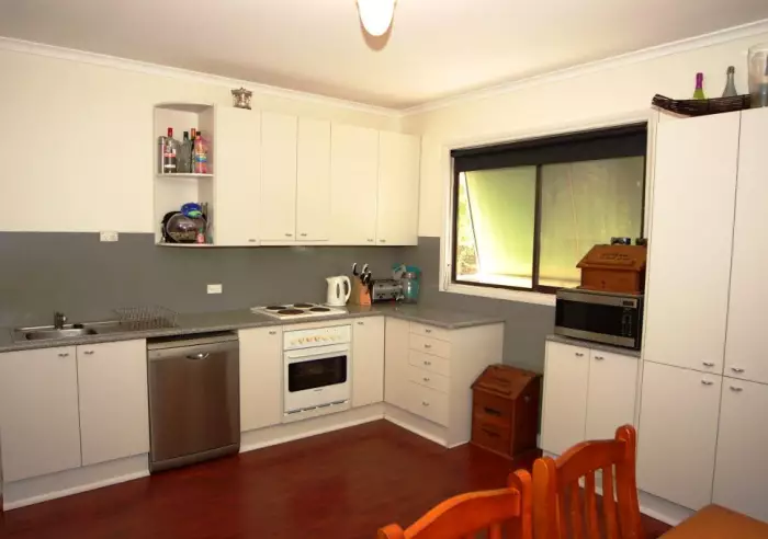 Freshly painted throughout with full house evaporative air conditioning and verandahs on two sides the home has built-in robes in all three bedrooms, carpeted lounge room with an economical combustion heater and an overhead fan to distribute the heat, spacious modern kitchen with electric cooking, dishwasher and room for family meal time. The tiled bathroom has been recently upgraded and includes a separate shower recess and a full size bath plus there is the bonus of a childrens play room.