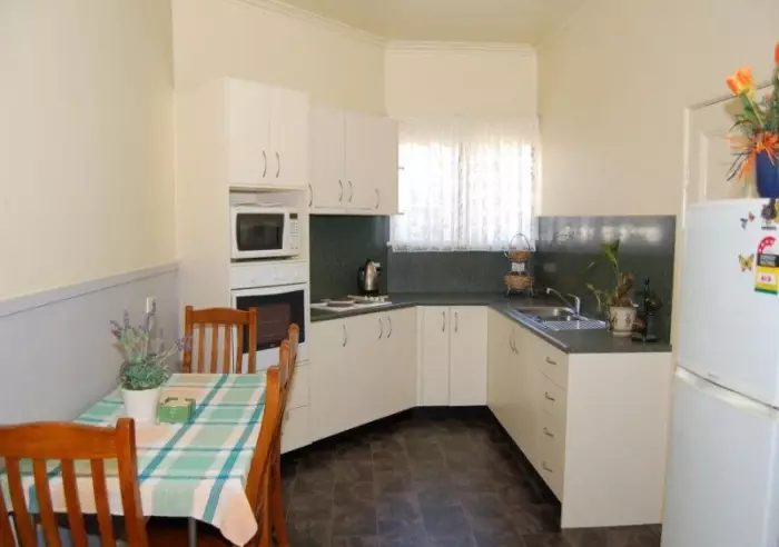 There is a very comfortable gas heated lounge room with reverse cycle air conditioning plus a very spacious rumpus room perfect for all your families? activities. The central kitchen and family meals area has been upgraded with fully laminated cupboards, separate electric oven and hotplates, range hood, double sink, walk-in pantry and new vinyl. Bedrooms total three all with built-in robes, one and two are doubles and the third is a double plus. The bathroom has the shower over a full size bath, the toilet is separate and the laundry has just been remodelled.