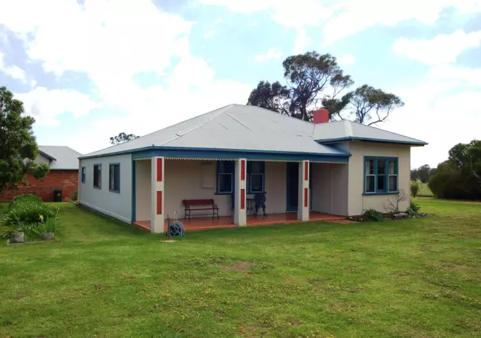 At the end of a tree lined driveway on two and a quarter acres the well-kept home is connected to town water and boasts a country size kitchen with heaps of cupboards, electric and combustion cooking and room for sit down dining. The timber panelled hallway leads to the air conditioned lounge with polished floor boards, combustion heating and views through the leadlight windows. Bedrooms one and two are large doubles and bedroom three easily handles two single beds while the bathroom has a shower over the relaxing full size bath.