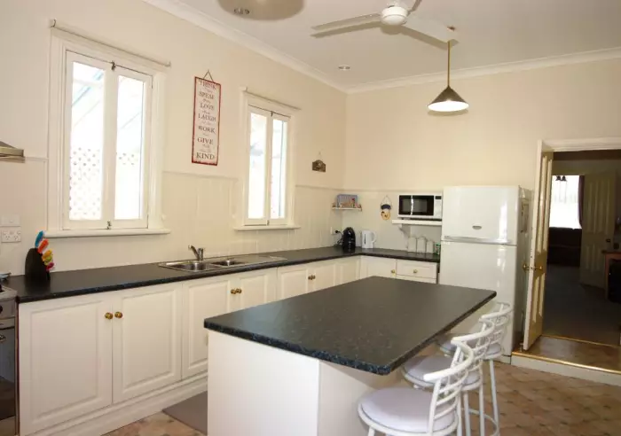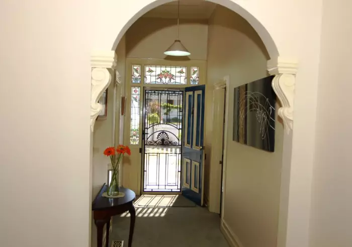 Fully climate controlled with gas central heating and evaporative cooling the layout features an entrance hall, separate lounge and dining room with door opening onto the verandah, an outstanding kitchen with top quality gas cooking and wonderful cupboard and bench space. The stunning main bedroom includes an original bay window and built-in robes, bedrooms two and three are both generous in size and have built-in robes and the secret forth bedroom is hidden in the attic with wonderful views to the mountains.