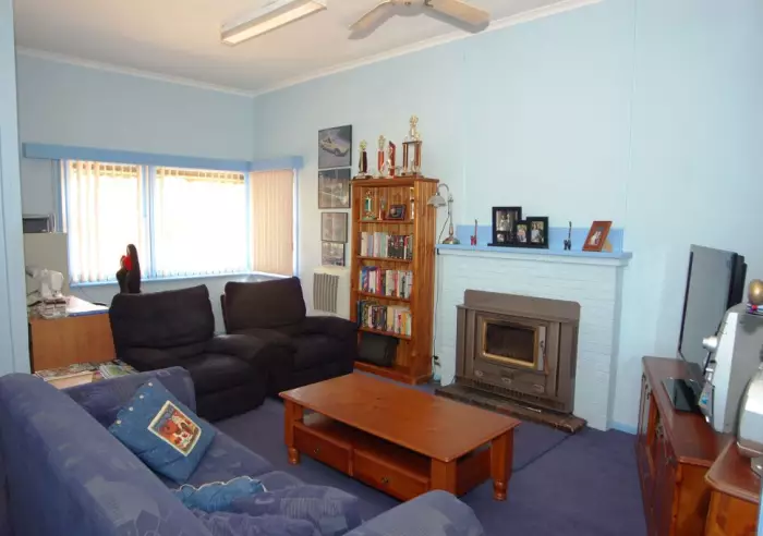 The lounge room has an economical, house warming combustion heater with an overhead fan, there are two bedrooms and a small paved outdoor entertaining area.