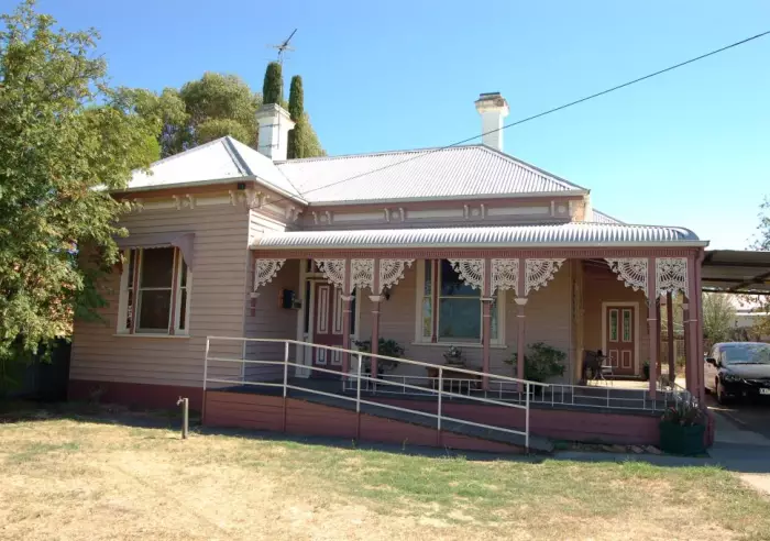 Only a short stroll to the shops, school & sporting facilities, this very stylish 4 bedroom Victorian home combines the charm of a bygone era with all the comforts of modern living, including full home air-conditioning. Inside the home boasts polished floor boards, 12ft high ceilings , leadlight windows, open fireplaces, pressed metal, elegant central hallway and traditional front & side verandas with classic Victorian lace. The centrepiece of the home has to be the well-equipped & spacious kitchen with gas and electric cooking, dishwasher, & plenty of cupboard and bench space. Adjoining the kitchen is the large & attractive gas heated family room & this leads to the stylish lounge with its pressed metal ceilings & polished floor boards. The four bedrooms are all double & the main features a full ensuite, built-in robe & a romantic open fireplace. There is also a covered rear area, rainwater tank, carport and workshop with power. Currently leased at $280.00 per week.